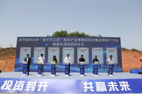 4月15日,封开县2025年“百千万工程”南丰产业集聚区启动暨招商推介大会在南丰镇成功举办,亿元现场共27个重点项目集中签约,封开总投资额近40亿元,工程项目涵盖先进制造、招商现代农业、推介研学文旅三大领域。成功
