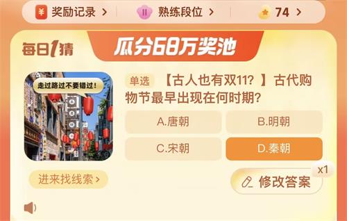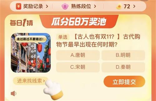 以上就是猜答淘宝每日一猜11.6答案一覽,大家需進入軟件中進行答題即可瓜分獎勵。淘寶
