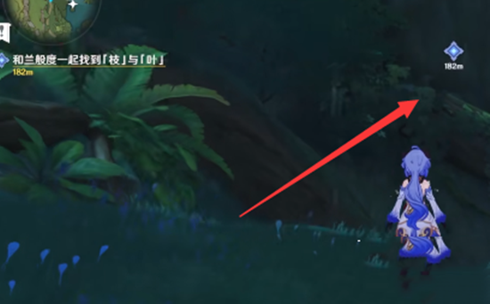 5、切换成新的任务,和兰般度一起去找枝叶。