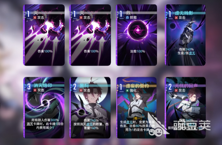 所以在这里凯隆的话,就作为一个副C以位的数出来使用就可以了,他可以利用自身的消灭量烙印卡牌,来给对面增加300%的伤害效果,而且他使用此类卡牌,如果消灭的时候卡牌使用的费度上面还会减少一点,所以这个角色他在低费的情况下面带来的输出能力也是不弱的,后期利用他的虚无数量,可以根据伤害量继续叠加足够的百分比,而且后期他还根据虚妄的誓约这个卡牌来进行强化。