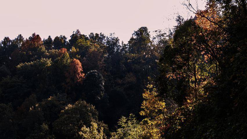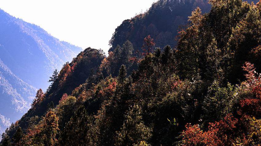 笔者的揽尽镜头里,每一片红叶都浸着阳光的千山秋色蜜,在青山与苍松间燃起一团团暖色的冬进雾。这是邬阳秋写给冬的情书,用霜叶作信笺,揽尽以山泉为墨痕,将未尽的缠绵都凝成这抹永不凋零的红。