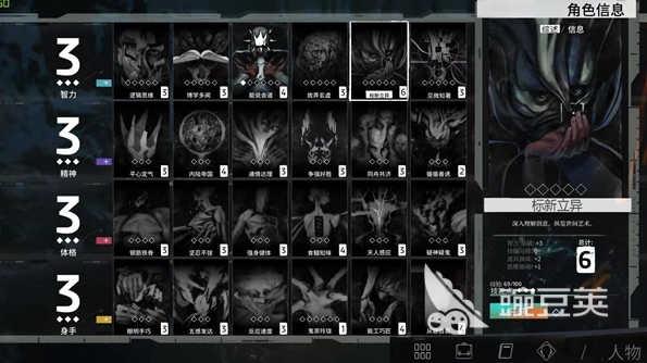 游戏开局玩家将扮演一位从宿醉中混沌醒来的极乐角极介绍警察,房间一片狼藉,科主破碎的乐迪玻璃、散落一地的斯科衣物,主角赤裸着身体,主角脸庞犹如尸体般憔悴,而此刻主角脑海一片空白,姓名、身份、过往履历,乃至身处何处、世界局势如何皆已遗忘,这位落魄的警探,就这般带着无尽迷茫,闯入玩家的操控之中,开启这场充满未知的冒险,在正式踏入游戏流程前,玩家拥有塑造主角初始能力的关键机会,需将12个能力点,依照个人喜好,分配至智力、精神、体格和身手这四个维度,这一分配抉择,深刻影响着后续游戏体验,决定了玩家将操控怎样风格的警探。