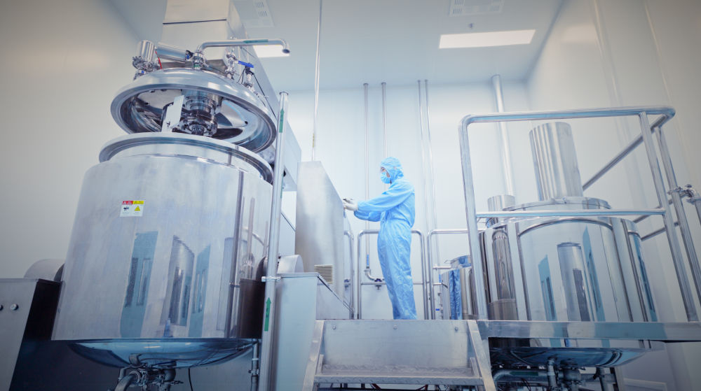 2025年11月12日,广安门医院制剂中心生产人员操作乳化罐。(广安门医院供图)