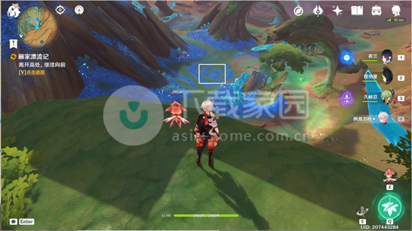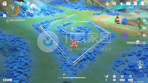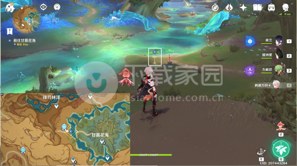 5、装备上斯露莎,按照下图所示的路线飞,触碰净觉花。