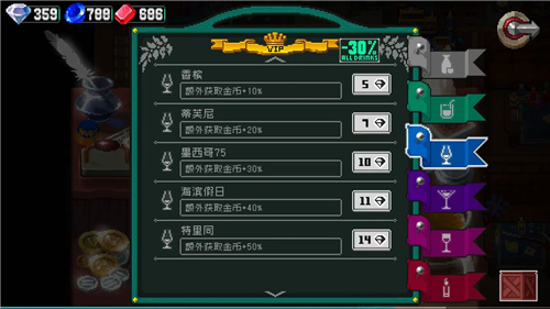 1、香槟:额外获取金币+10%,价格5灵魂结晶。