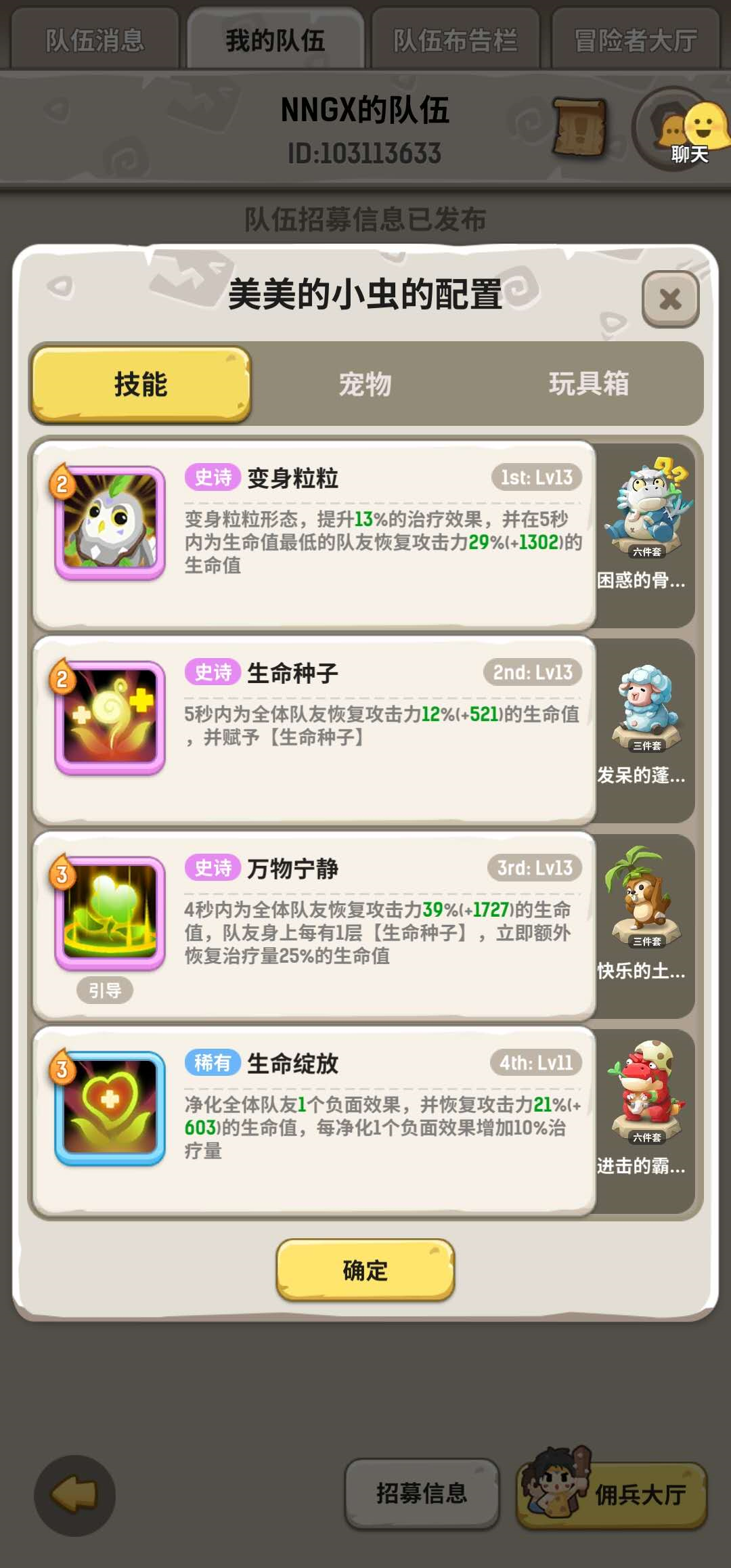 变身粒粒可以使得自己的回复技能增加30%的效果,每次普通攻击都能够回复大量的生命值。而生命种子可以加万物宁静以及生命绽放的回复效果,并且生命绽放可以进化全体队友的灼烧效果,保证自身状态的良好。