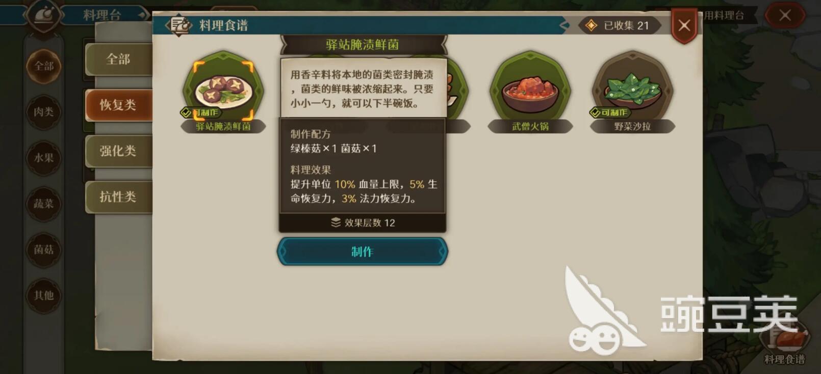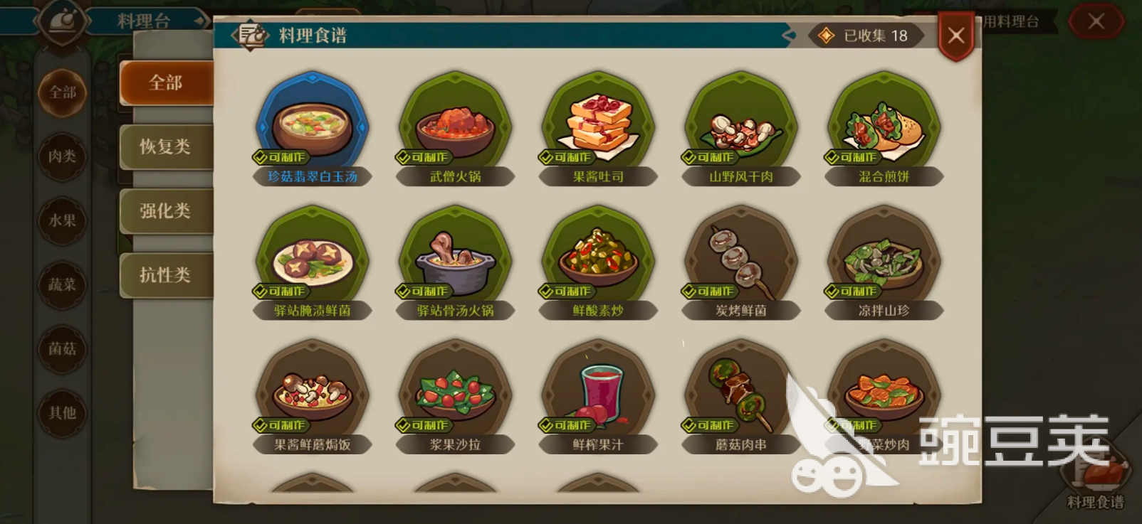 额外玩家也需要注意,野菜沙拉是由两种蔬菜所组成的,鲜榨果汁是由两种水果食材组成的,碳烤鲜菌是由两种菇类的食材所组成的,果香烤肉是由水果跟肉类食材所组成的。不得不说,玩家其实也比较清楚,像这些食材搭配合理之后,所产生的效果往往是不一样的,玩家需要深入的去了解。