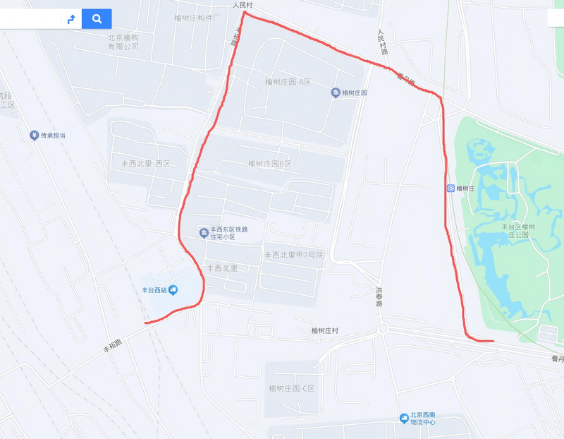 记者随后从丰台区看丹街道了解到,榆树庄村村委会南侧小路,西起榆树庄路,东至看丹南路环岛,宽约3米,该道路为非规划道路,是历史形成的街坊道路。