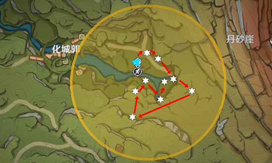 1、置介傳送到道成林的原神七天神像那,就在化城郭的藏寶右邊。