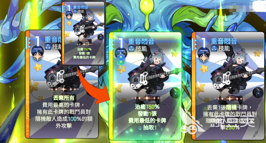 那么在费率的效果上面,大家一定要注意,所有的卡片都是没有强化过的,所以在选择卡片的时候,如果所有的卡都要选择进行强化的话,那自身的费用绝对是不够的,那么大家在选择卡组的时候就要优先选择那些能够利用少费,但是带来足够强化的卡牌,这类卡牌搭配角色的技能才会有足够的强势阶段,如果大家在认为卡牌能力非常强,但是费用不够的阶段下,大家也可以搭配一些有回费能力的技能卡,此时进行搭配的话,再带来一些有发动效果的强化卡,可以带来的战场效果会更强势一些,在毕业环境下的话,大家其实不缺费用的情况下,那么过牌的话也可以进行一定的保值。