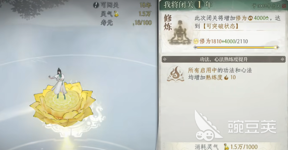 玩家可以自由选择是否要闭关修炼,而且在修炼时,角色的年龄也对修炼的过程有一定的限制,玩家可通过消耗寿元丹,在闭关修炼中进化和成长。灵潭感悟将会帮助玩家一次性获得4000灵气值,开启灵潭的时间越早,对于玩家的修炼就会越有帮助。很多的环节中都可以随机刷新出能够获取灵气的事件的,尽可能的积累更多的灵气,可以在练气期和闭关修炼期打下夯实的修仙基础,巩固角色的神识值和寿元数值。