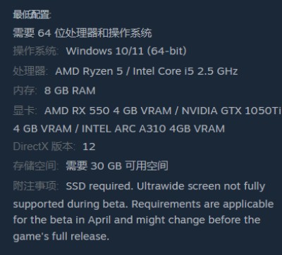 显卡: AMD RX 550 4 GB VRAM / NVIDIA GTX 1050Ti 4 GB VRAM / INTEL ARC A310 4GB VRAM