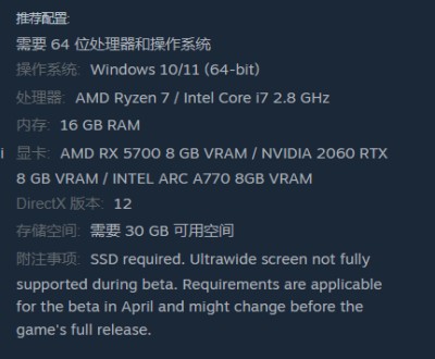 显卡: AMD RX 5700 8 GB VRAM / NVIDIA 2060 RTX 8 GB VRAM / INTEL ARC A770 8GB VRAM
