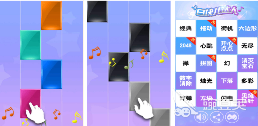 是一个考验玩家反应能力的游戏,在游戏中会根据音乐的节奏出现彩色的方块儿,玩家只有尽快的点击才能演奏出正确的乐曲,非常考验玩家的手速,而且音乐节奏越快,方块儿的速度就会越快,整场游戏能让玩家体验到手抽筋的感觉。