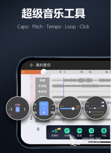 这款软件配有原版和弦及演奏技法,热爱音乐的小伙伴可到这款软件上来学习,掌握音乐的一些技巧和方式,能够满足音乐线上线下教育以及需求,可自由组合或者是关闭歌曲的各个伴奏,来展示自己的歌唱谁平。
