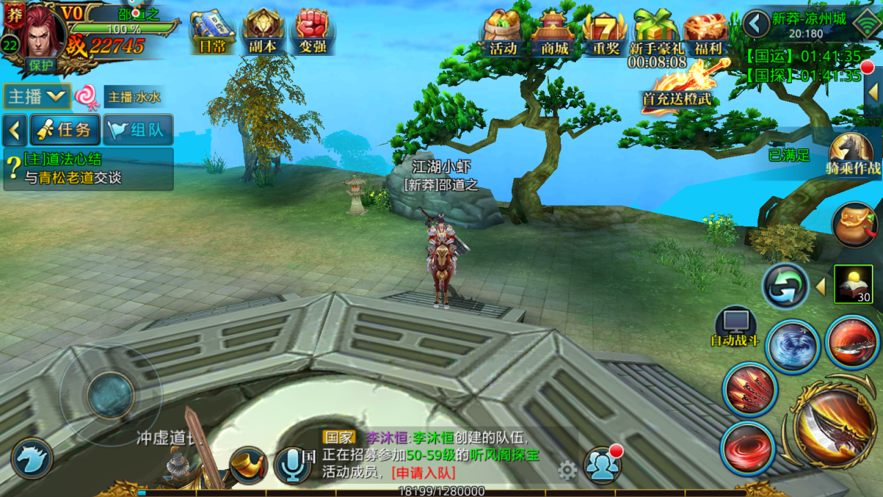 砍大旗任务的流程是,先去自己的阵营指挥官处接任务,然后接下来会把玩家传送到别的国家的地盘里面,其他国家每一个地图里都有属于自己势力的大旗,而玩家要做的就是跑到大旗面前,把大旗边上的守卫击杀掉,然后砍断大旗。中间不仅有守卫会阻拦玩家,还会有其他国家的真人玩家出来阻挠,所以必须要提升自己足够多的势力才能顺利砍旗。
