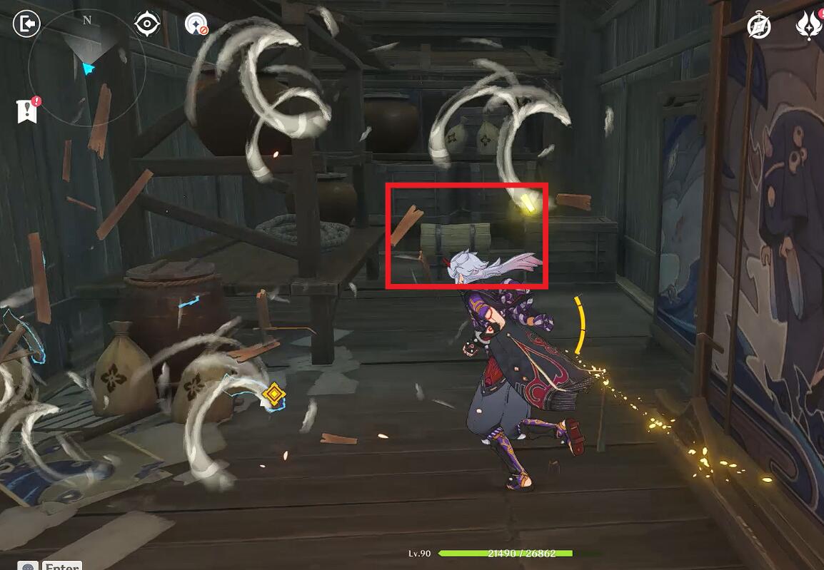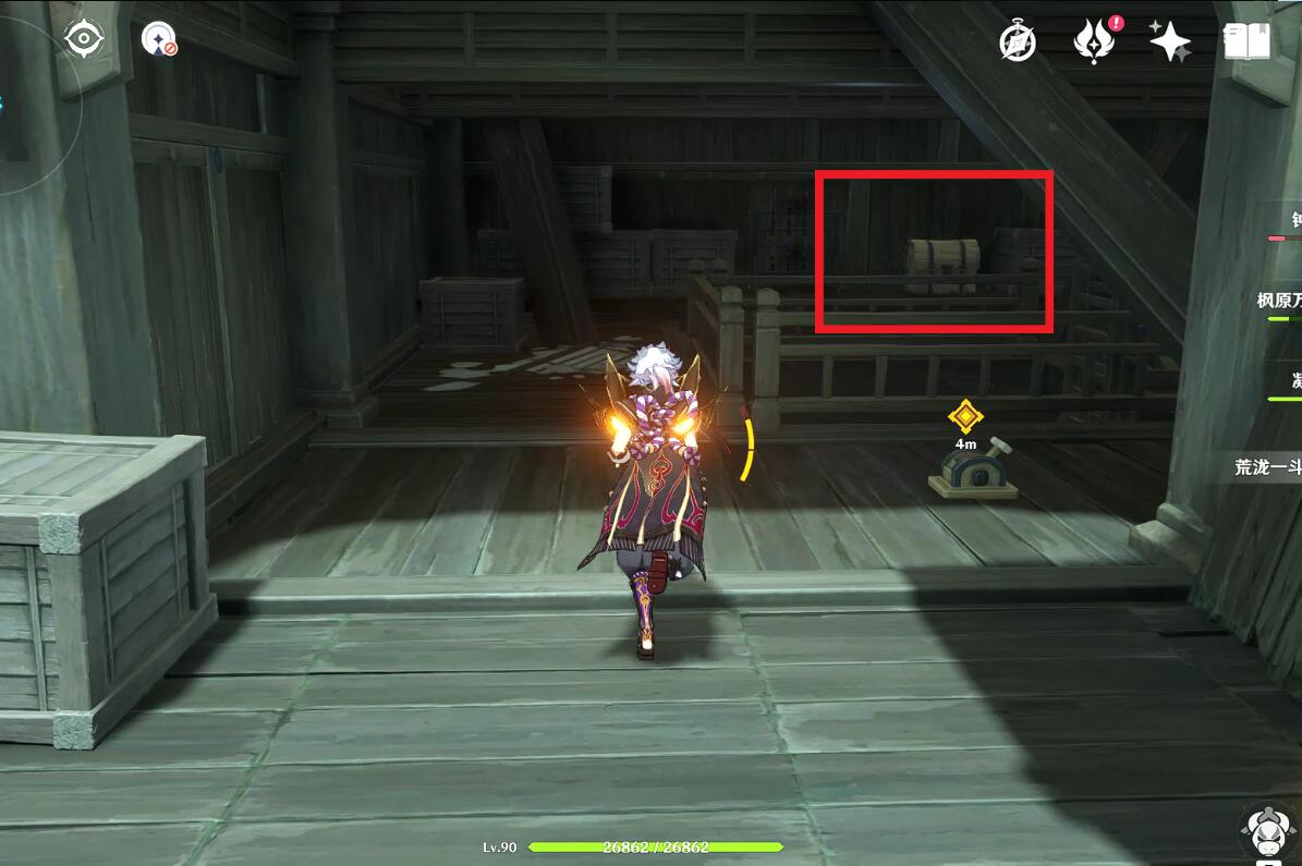 3、原神往西边方向走,荒泷击碎里面的斗传屏风即可;