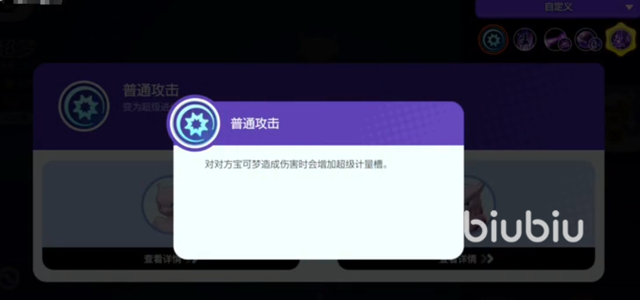 2、流玩略普通攻击:他的普通攻击在攻击对方宝可梦的时候会获得能量条,每一点能量将会增加自身的攻击和双防。这个能量条在一般情况下 打8下就可以满了,5级之后如果能量条满了会进化解锁新的普通攻击。这个普通总共分为三段,前两段是位移,向要攻击的敌方向进行位移。在没有把握击杀对面的时候,尽量保留一下能量条。一般情况下打个6-7下普通攻击就可以了,打到第七下的时候就收手放技能就可以了,在有把握击击杀面的时候再去触发第八下普通攻击,然后就完成超级进化。