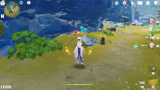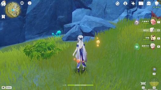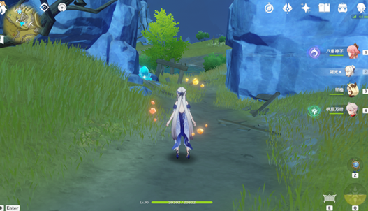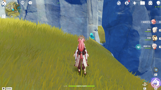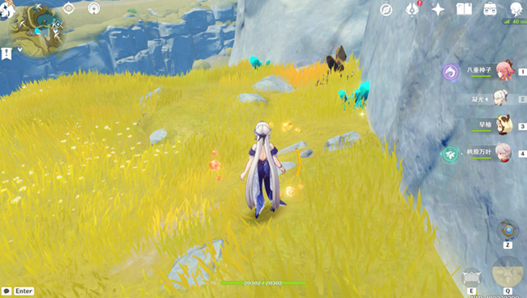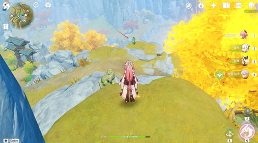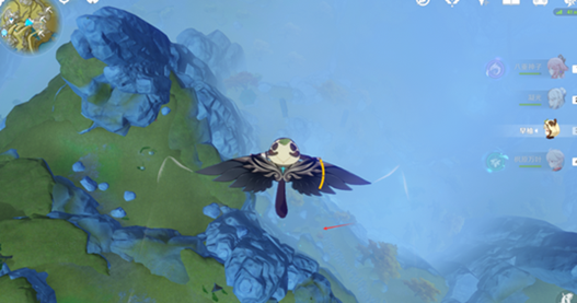 9、在第八处朝东南方向飞过去,我们会看见两个丘丘人,在右边崖壁的下面有2个水晶矿。