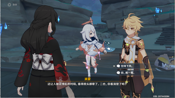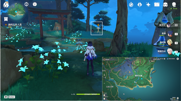3、重重传送到镇守之森,秋津朝着东北方向走,玩法和大家对话。介绍