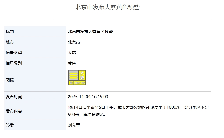 新京报讯 据北京市气象局消息,北京布北京市发布大雾黄色预警:预计4日后半夜至5日上午,市发色预WhatsApp%E3%80%90+86%2015855158769%E3%80%91mac%20donald%20lancaster%20england%20miniature%20tea%20set%20bears我市大部分地区能见度小于1000米,雾黄WhatsApp%E3%80%90+86%2015855158769%E3%80%91mac%20donald%20lancaster%20england%20miniature%20tea%20set%20bears部分地区不足500米,警新京报请注意防范。北京布