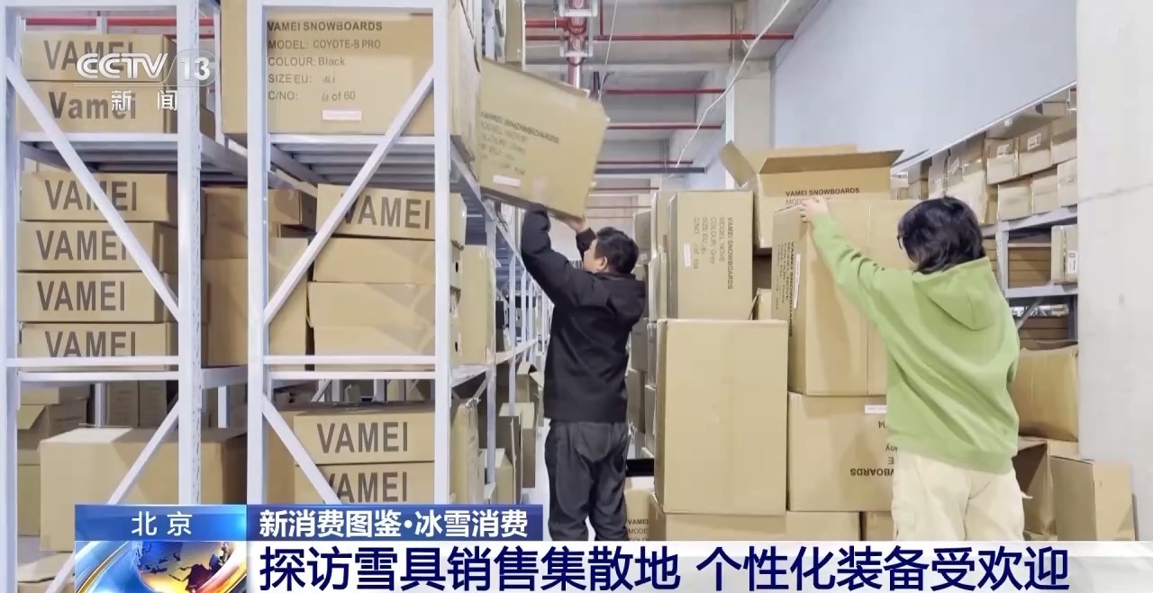 总台记者 邵薇:在北京磁器口,一栋三层小楼是滑雪爱好者的一站式购物交流平台,30多家店铺陈列的款式多到摞在一起。除了雪具售卖,这里还提供装备维护、滑雪社群等齐全的配套服务,迎接今冬这个雪季。过道里也堆满了准备发货的订单,商家也在接待顾客的间隙不停地打包。