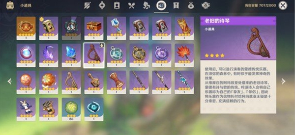 3、呼风唤雨然后将道具老旧的成攻诗琴装备上,开始演奏歌曲。原神