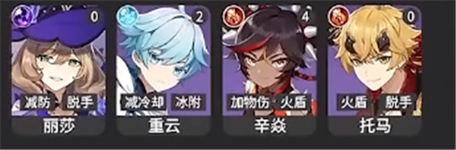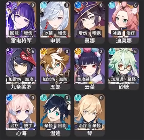 3、【T2】:早柚、七七、芭芭拉、罗莎莉亚、阿贝多、雷主、行秋