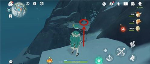 3、介绍来到悬崖边上,原神继续走到对面的雪山平台上去。
