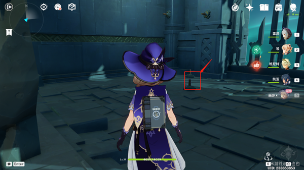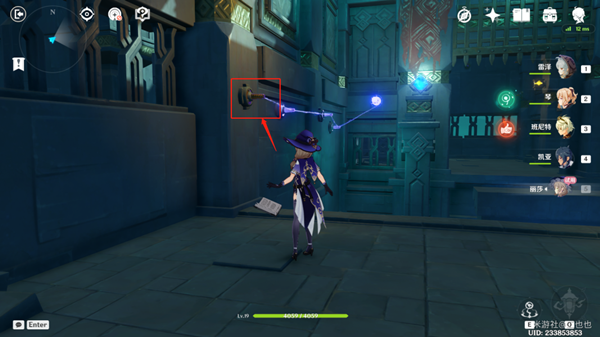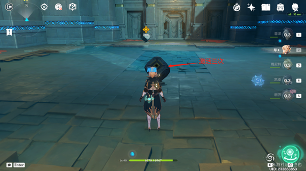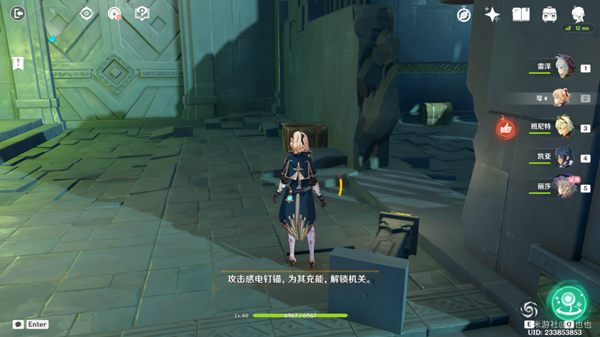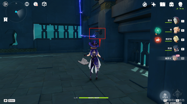 4、深渊用丽莎打出元素战技,法师开启第一个机关。