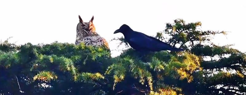 乌鸦盘旋驱赶雕鸮。姜天垚供图