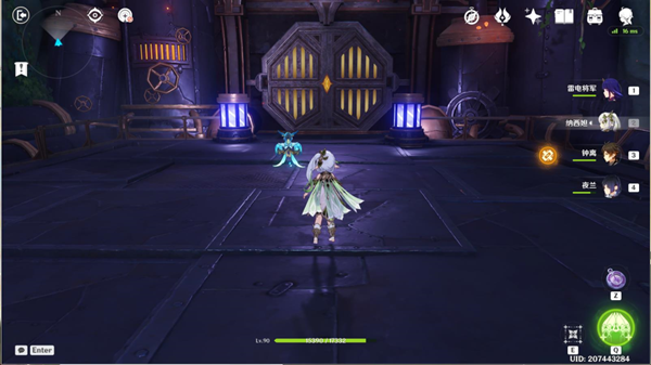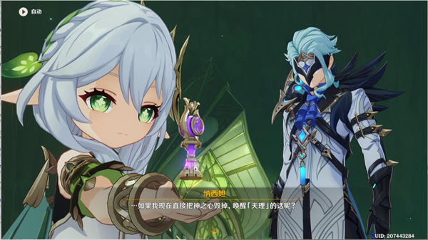 1、原神意识把游戏时间调到16点,舟之处进入净善宫和纳西妲对话。所至