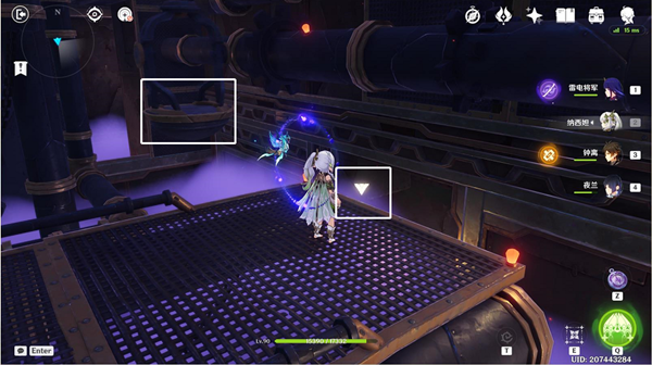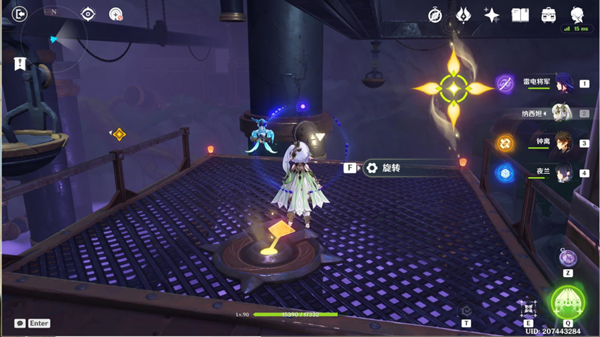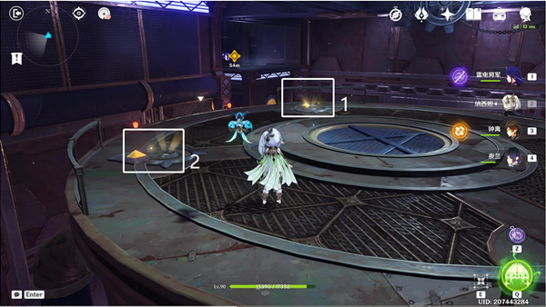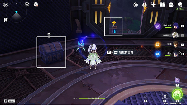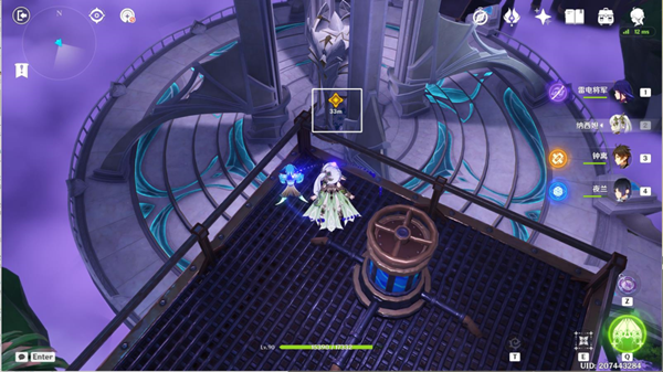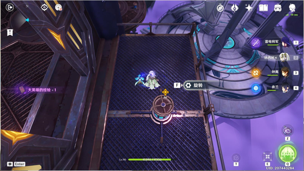 21、找到东南方向的机关,旋转1次,等电梯过来,拿到第二个宝箱。