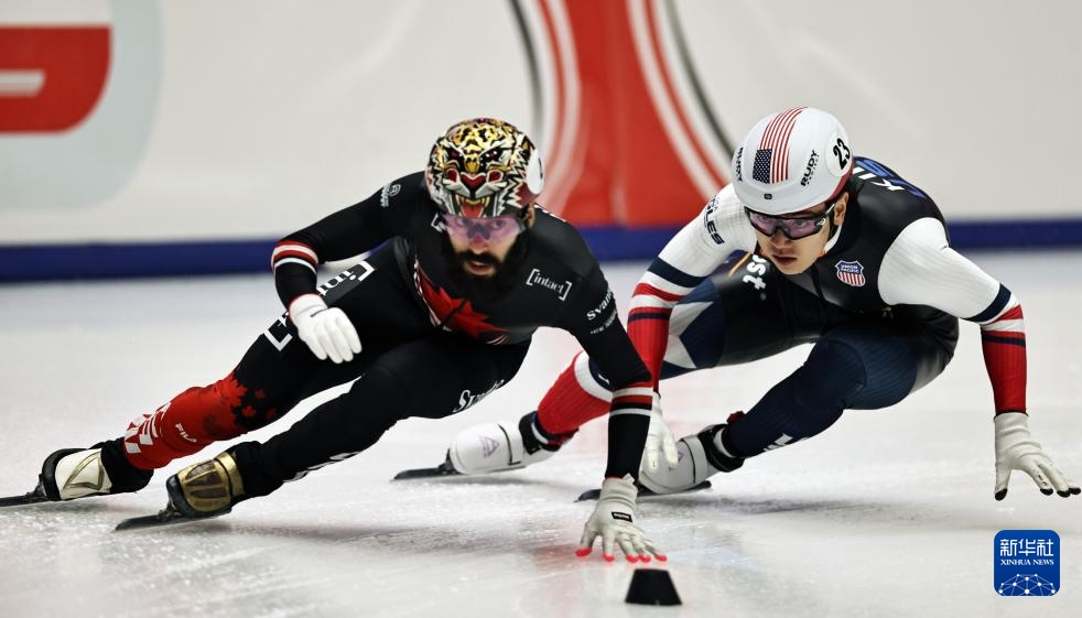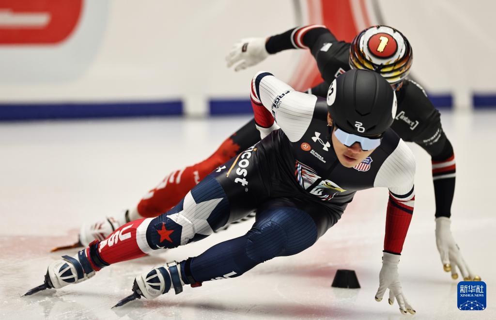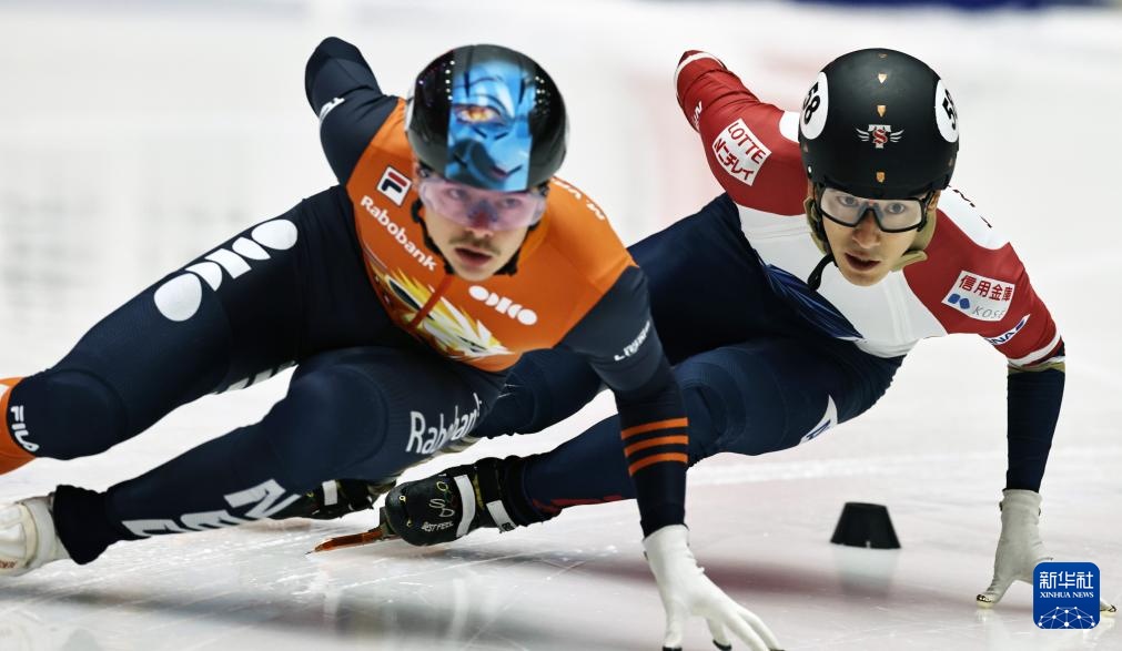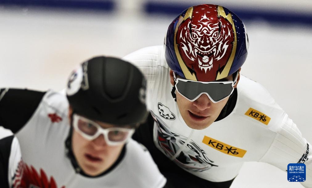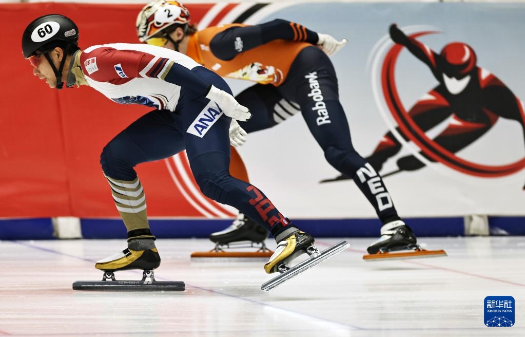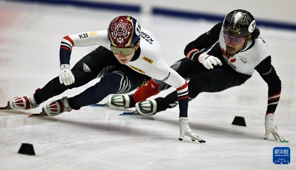 11月20日,短道韩国队选手黄大宪(右)在比赛中。速滑世巡赛第赛赛最终,站混韩国队以2分45秒792的合团成绩晋级半决赛。