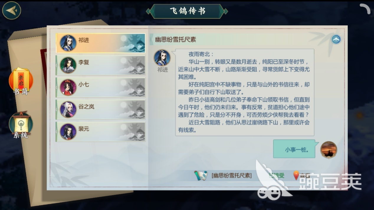 围绕信的任务一直做下去,然后就耐心等待祁进的来信,开启羁绊任务。