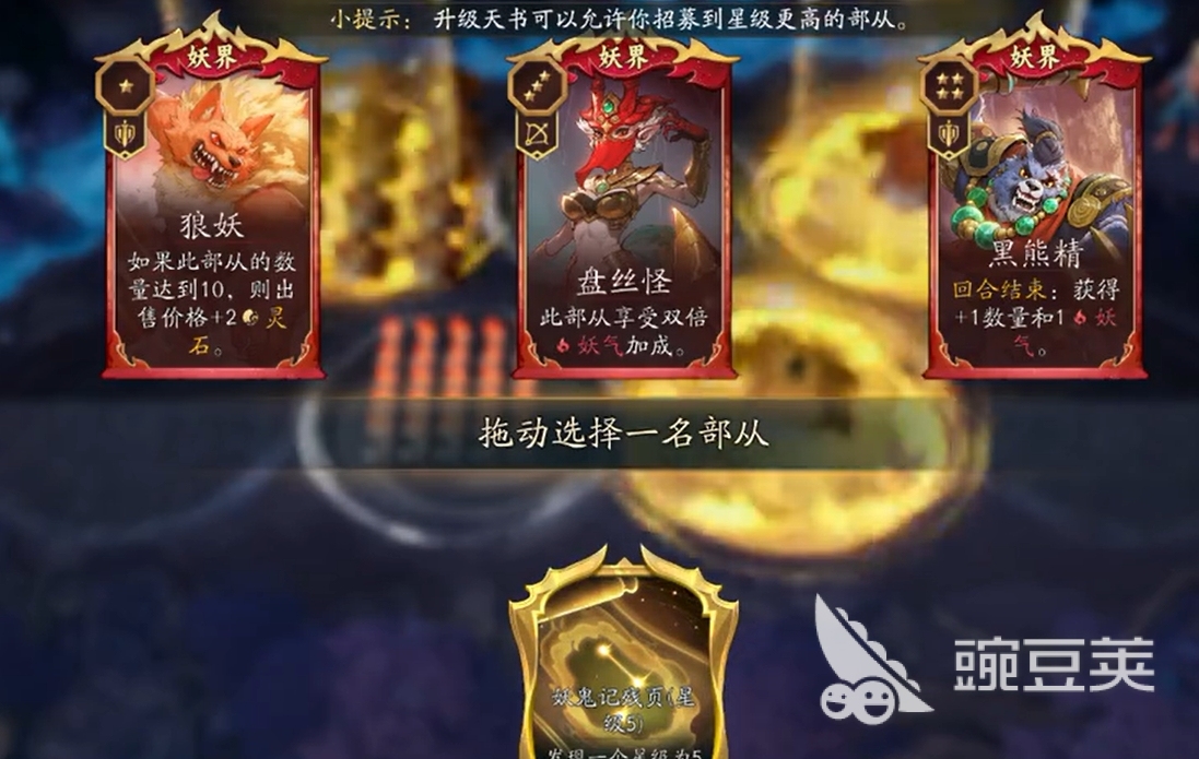 实际操作中,人们可利用妖族低星部从去度过前期,等天书到四后优先拿奇市坊主,只有获得它后天书才会刷出妖界奇市坊主,所以接下来玩家的任务就是一直去进行天书刷新,直到拿到了妖界奇市坊主后,就可利用它与其它坊主搭配成蛤蟆阵容,确保自己能顺利地将天书升到六,找齐黄风怪、金翅大鹏、青矛狮王和狰妖。到了这时,各位就可利用狰妖的效果主动触发妖族部从的战吼,不断地从天书里拿妖界奇市坊主来获得宝箱。