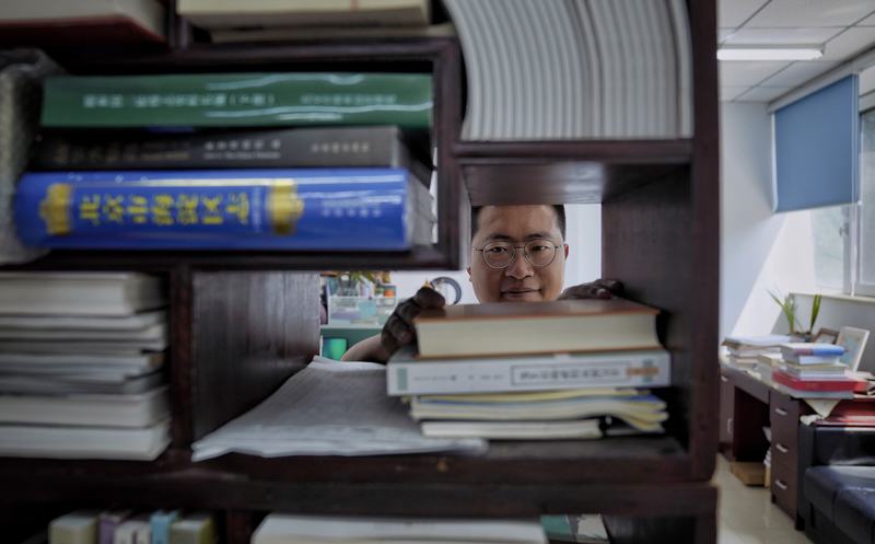 张鹏飞在查閱文獻(xiàn)。新京報(bào)記者 薛珺 攝