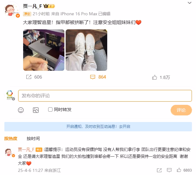 但期间又出现了魔鬼粉丝的魔鬼疯狂追星行为,以至于贾一凡微博发文呼吁大家理智追星。粉丝