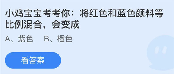 问题2-小鸡宝宝考考你:将红色和蓝色颜料等比例混合,会变成?
