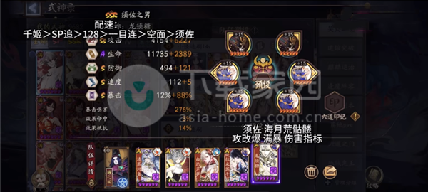 2、须佐2号:海月荒骷髅、攻攻爆/暴、满暴、伤害指标。