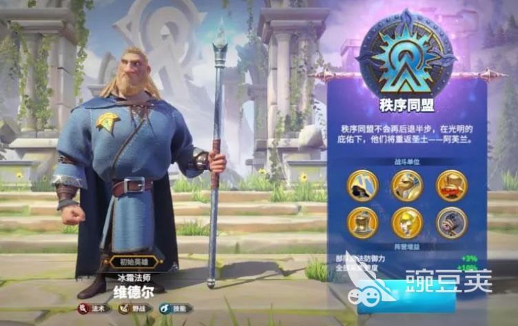 第二个阵营叫秩序同盟,从角色形象上看他手执魔杖威风凛凛,一看就是人族的魔法师形象。秩序同盟的优势特点在于部队对于魔法攻击的防御力会有所提升,另外一个特点就是特别擅长采集,速度提升高达10%,这算是个不错的优势了。