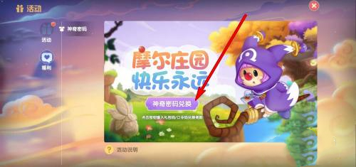 3、摩尔码分来到神奇密码页面,庄园周年点击神秘密码兑换。庆神奇密