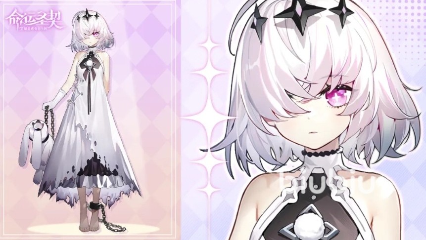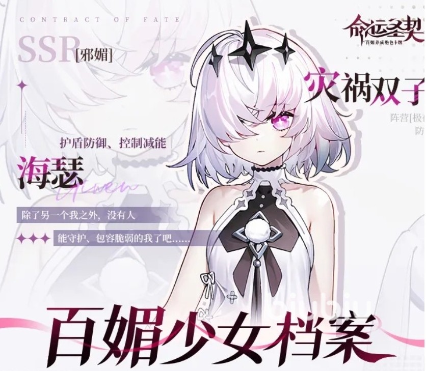 在最后再来了解下游戏中对于海瑟的背景设定,会让玩家更好的理解这个角色的技能和应用场景。海瑟被誉为【灾祸双子】,因为她不仅有一个可爱的本体,在她的背后海有个强大的影子。她的角色立绘是光明和黑暗的混合体。