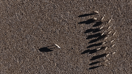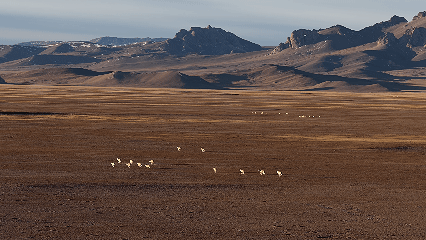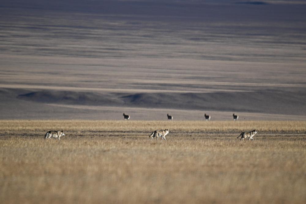 在阿爾金山國家級自然保護區,狼群準備圍獵藏羚羊(12月7日攝)。新华社记者 辛悦卫 摄