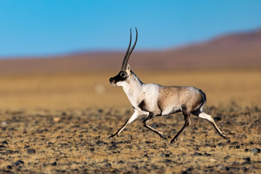 一只雄性藏羚羊在羌塘国家级自然保护区的草原上奔跑(12月4日摄)。新华社记者 姜帆 摄