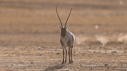 在阿爾金山國家級自然保護區,一只雄性藏羚羊在追逐雌性(12月9日攝)。新华社记者 辛悦卫 摄
