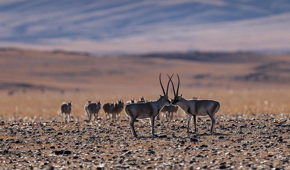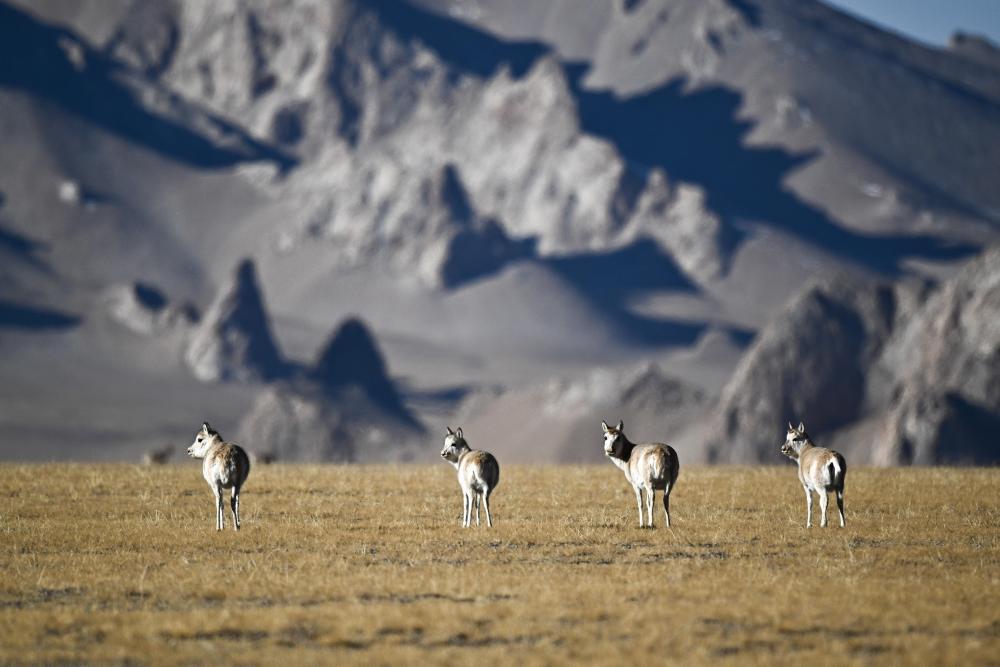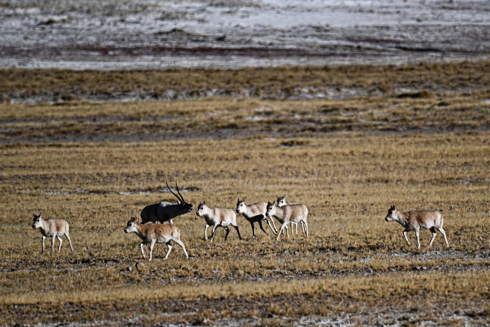 在羌塘国家级自然保护区拍摄的藏羚羊(12月4日摄)。新华社记者 郭昱 摄