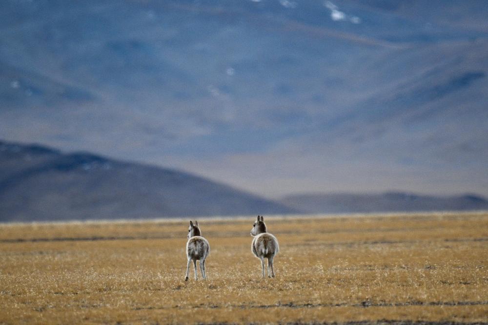这是冬日12月2日在羌塘国家级自然保护区拍摄的藏羚羊。新华社记者 郭昱 摄