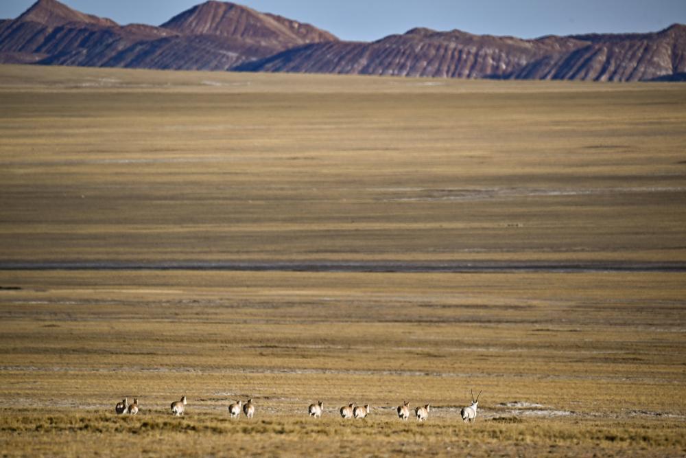 这是在羌塘国家级自然保护区的草原上拍摄的藏羚羊(12月4日摄)。新华社记者 郭昱 摄