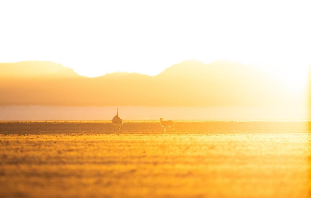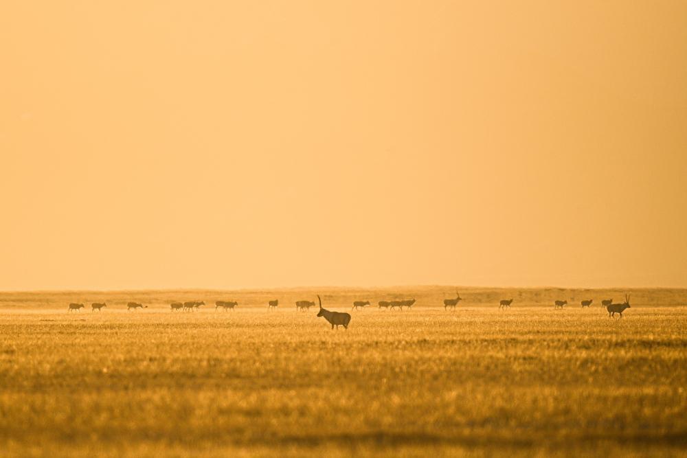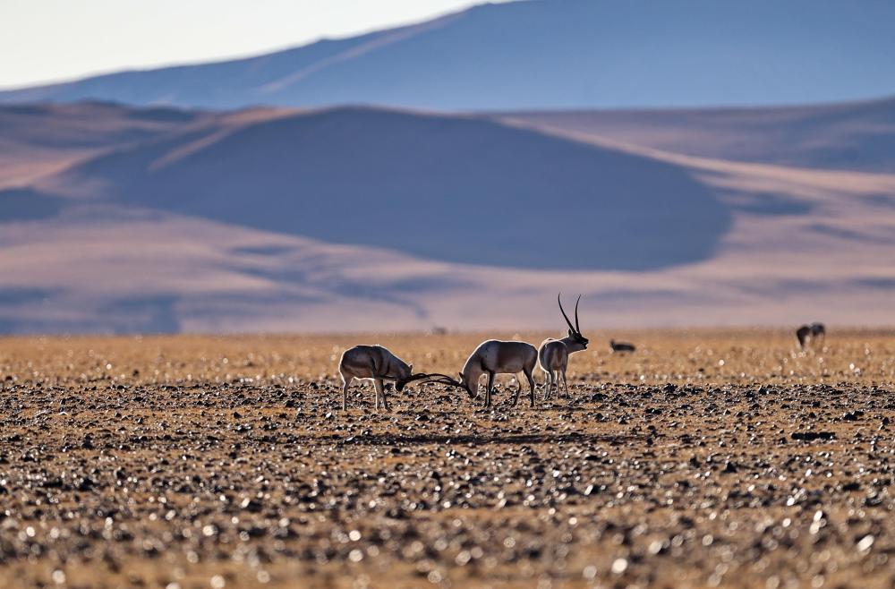 在阿爾金山國家級自然保護區,藏羚羊在日出時分覓食(12月7日攝)。新华社记者 辛悦卫 摄